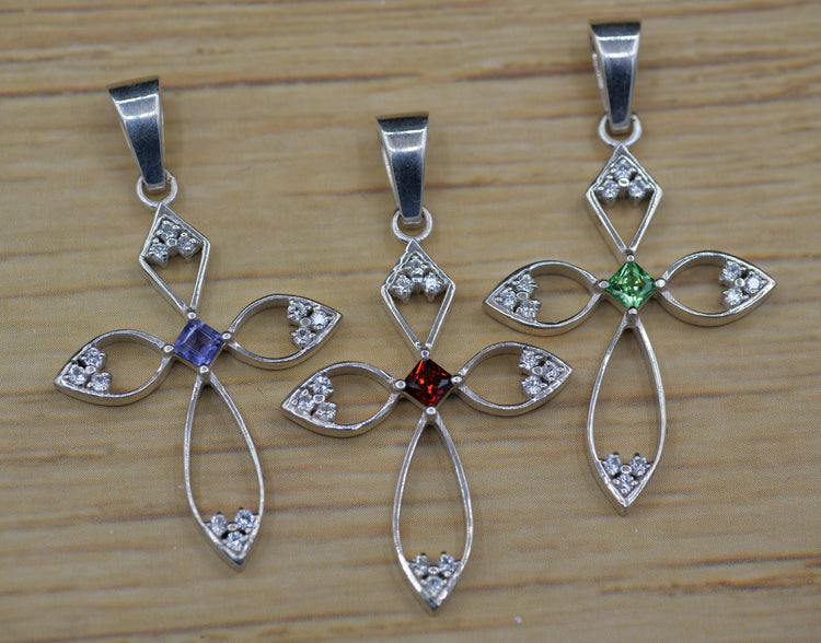 Collection: Gemstone Openwork Cross in Sterling Silver